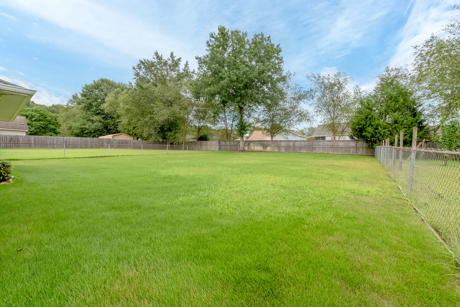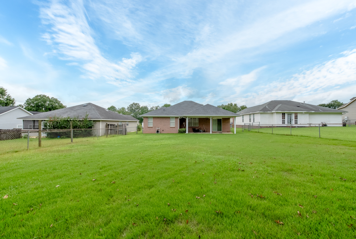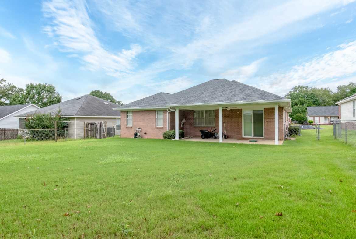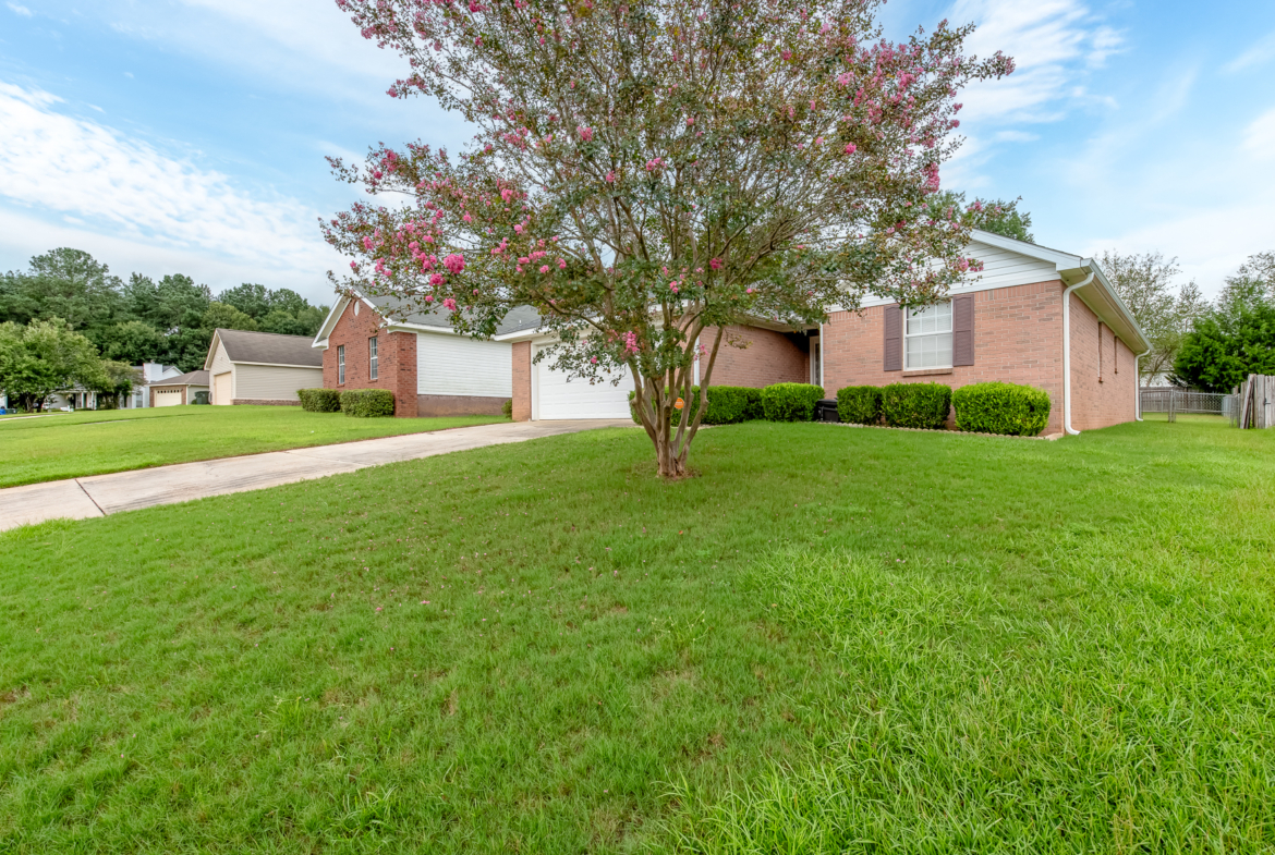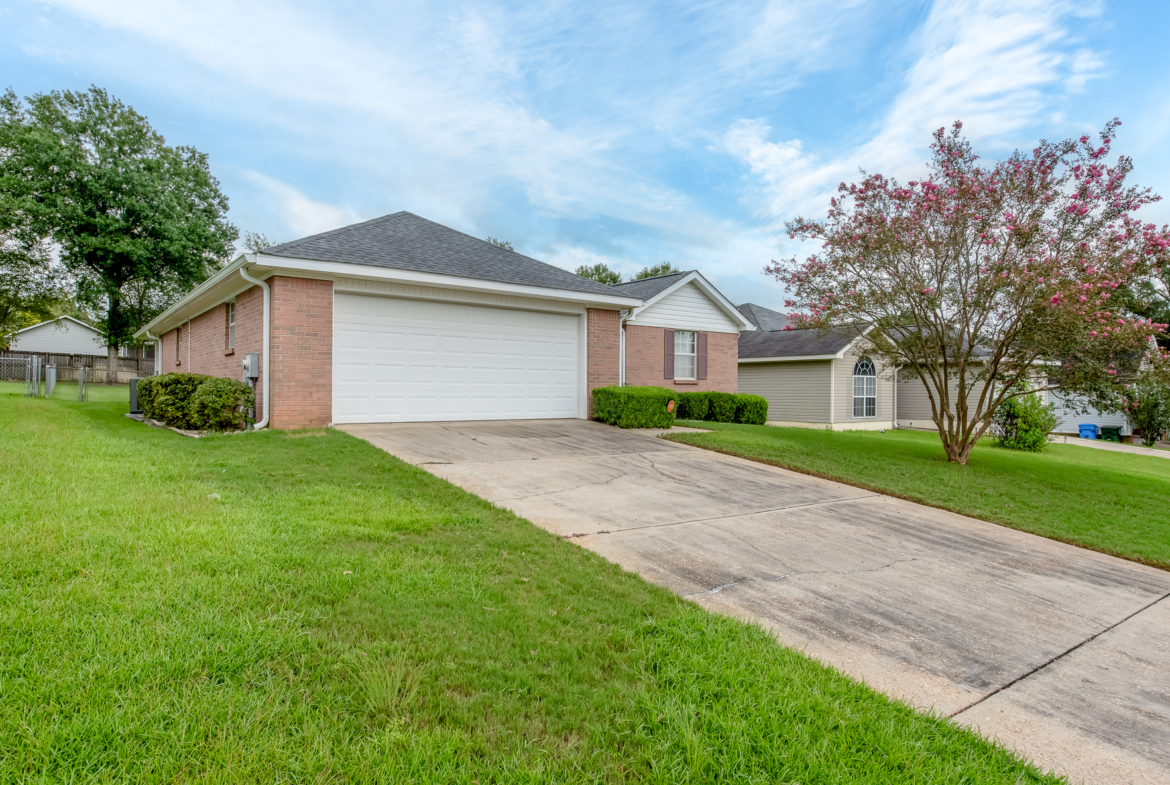 Welcome to this well-maintained 3 bed, 2 bath home, offering 1,511 square feet of comfortable living space in the quiet Poplar Grove subdivision. Before you head inside, the exterior features a new roof (2024), gutter system, well-maintained shrubbery, and a sprinkler system with its own water meter. The home is also under an active termite bond, for added peace of mind. The fenced-in backyard features a covered porch area with French drain around the porch to ensure no rainwater issues. Inside, the welcoming foyer opens to the generous living room, centrally located and leads to the dining area, perfect for entertaining. The kitchen features stainless steel appliances and beautiful granite countertops, and is laid out with functionality in mind. The two car garage and laundry room are also off the kitchen, ideal location for carrying in groceries. The master bedroom, located off the living room, offers ample space, as well as a large walk-in closet. The master bath features a newer walk-in shower, complete with a fold-down seat, as well as a linen closet and plenty of counter space. The additional two bedrooms and additional bathroom are located off the foyer and offer ample storage space. The HVAC was replaced in 2017 and has been regularly serviced every six months. This home has been very well taken care of, and is ready for you to make it your own. Schedule your private showing today!