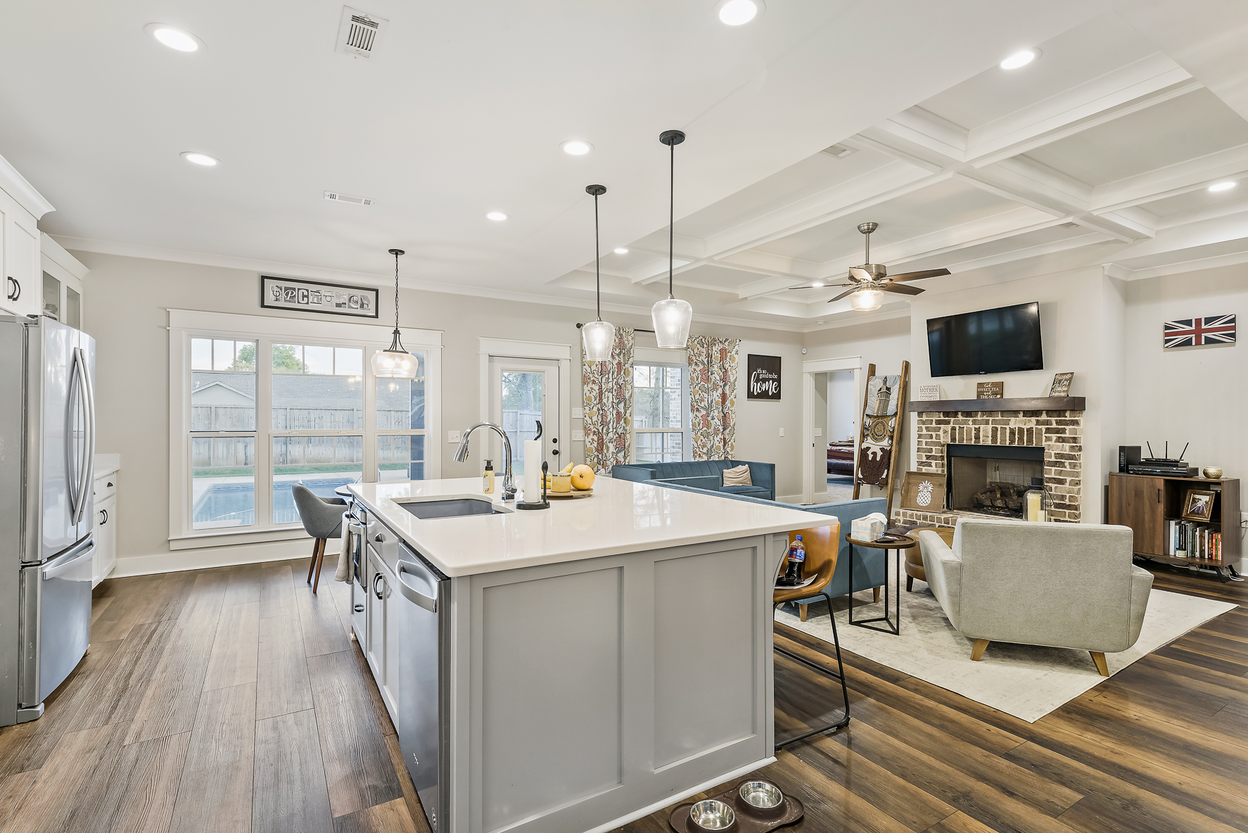 This house has so many unique custom to pass by. Check out this gorgeous smart home 5 bedroom, 2 1/2 bath with a doggie shower, open floor plan house situated inside the Hillcrest Elementary and Dauphin Jr. school zone. The screen back porch is the perfect view into your backyard and jump into the 16×34 saltwater pool. The bonus room is not just a bonus room, it’s a bedroom with a very unique half bath You must see it to fully enjoy it! The primary bedroom is accessible from the back screened in porch with its own entrance into the house. The kitchen is open to the living room and dining area and is equipped with custom cabinets with lighting and upgraded stainless steel Whirlpool appliances. The microwave is not just a built in but a pull out and plenty of storage in the oversized walk-in pantry! A very large quartz counter island is perfect and accommodates 4 counter chairs with room to spare. Primary bath also have corks countertop with a DOUBLE shower and SEVEN-foot soaking tub. The bathroom connects to a Huge walk-in closet. The mudroom is where you can also bathe your fur baby. Is privacy important to you? Well, your back yard has its own privacy fence. Between the spray foam and Nest thermostat the house will stay nice and cool during those hot summer days. This home has gutters and a covered front porch to relax on, in addition to the back screened in porch equipped. This home was designed with thoughtful layout, porches and yard for privacy & enjoyment. Call today!