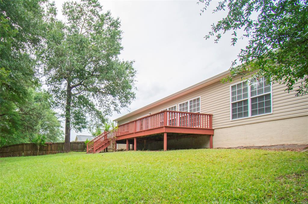 This rare find in Daleville will check all the boxes. The four bedroom and two full bath split bedroom floor plan with a large open main living area will be all the room you need. The kitchen has plenty of cabinets and counter space for all of your special meals and baking. A walk-in pantry will help make organizing your kitchen a snap. The master bedroom and bathroom are both very spacious, so bring your large furniture without fear of having room for it. The dining area is tiled and has French doors that lead you out to the deck and back yard. Sit on the deck and enjoy the peacefulness of only quiet woods behind the house. The two-car garage has built-in storage and workbench. Call today to see this 2006 home across from Cairns Air Field.
