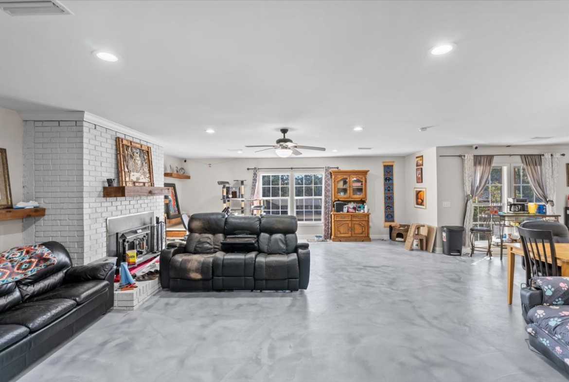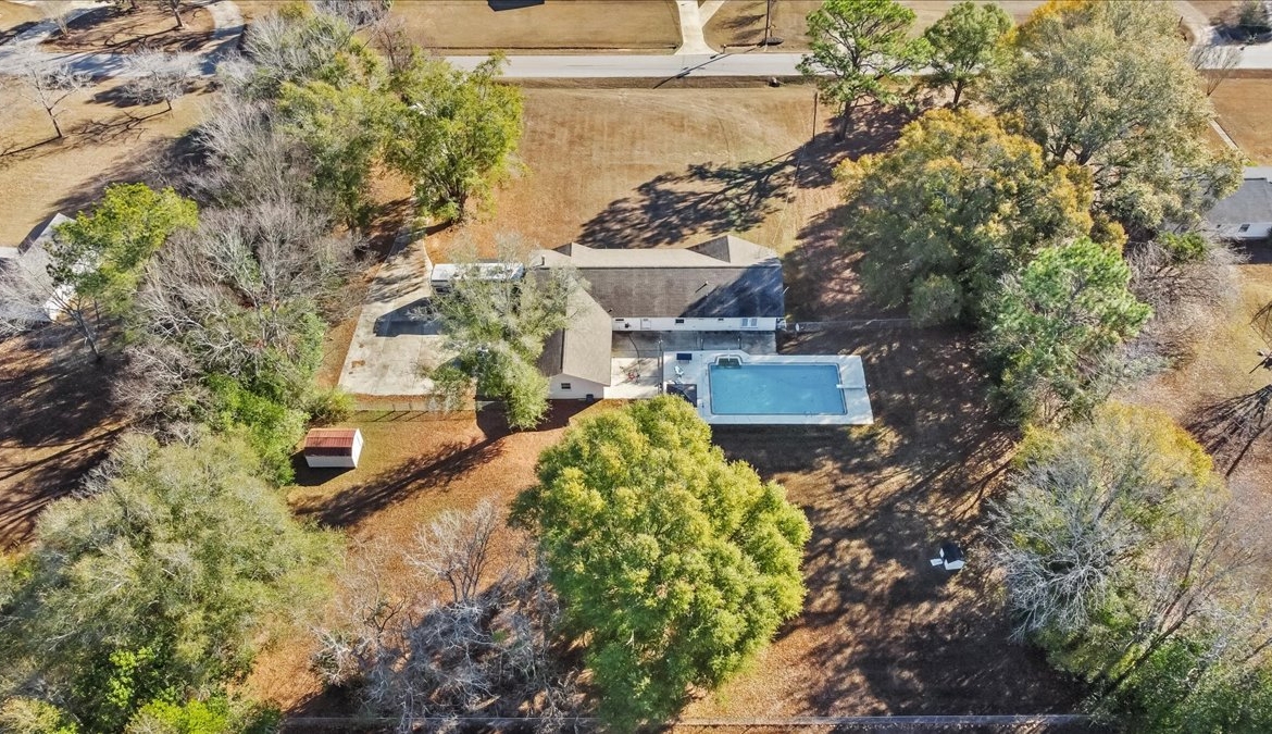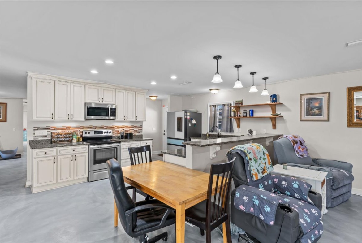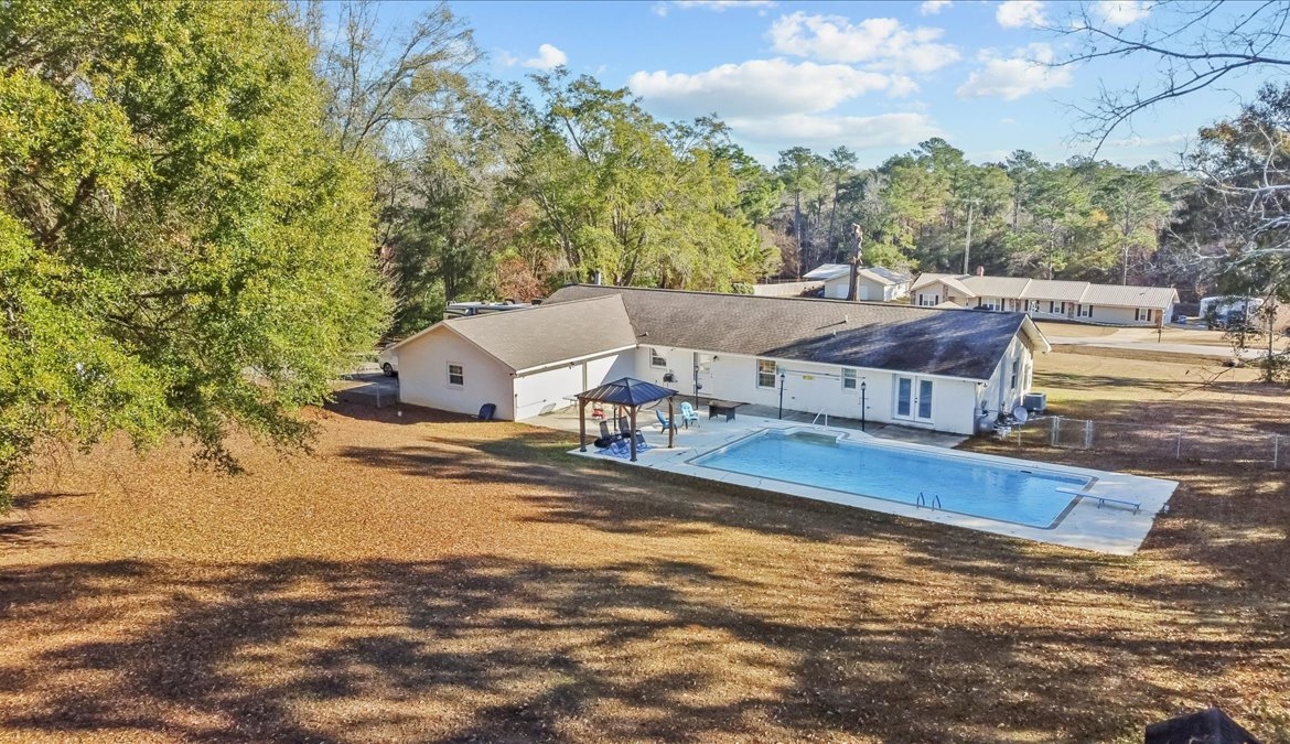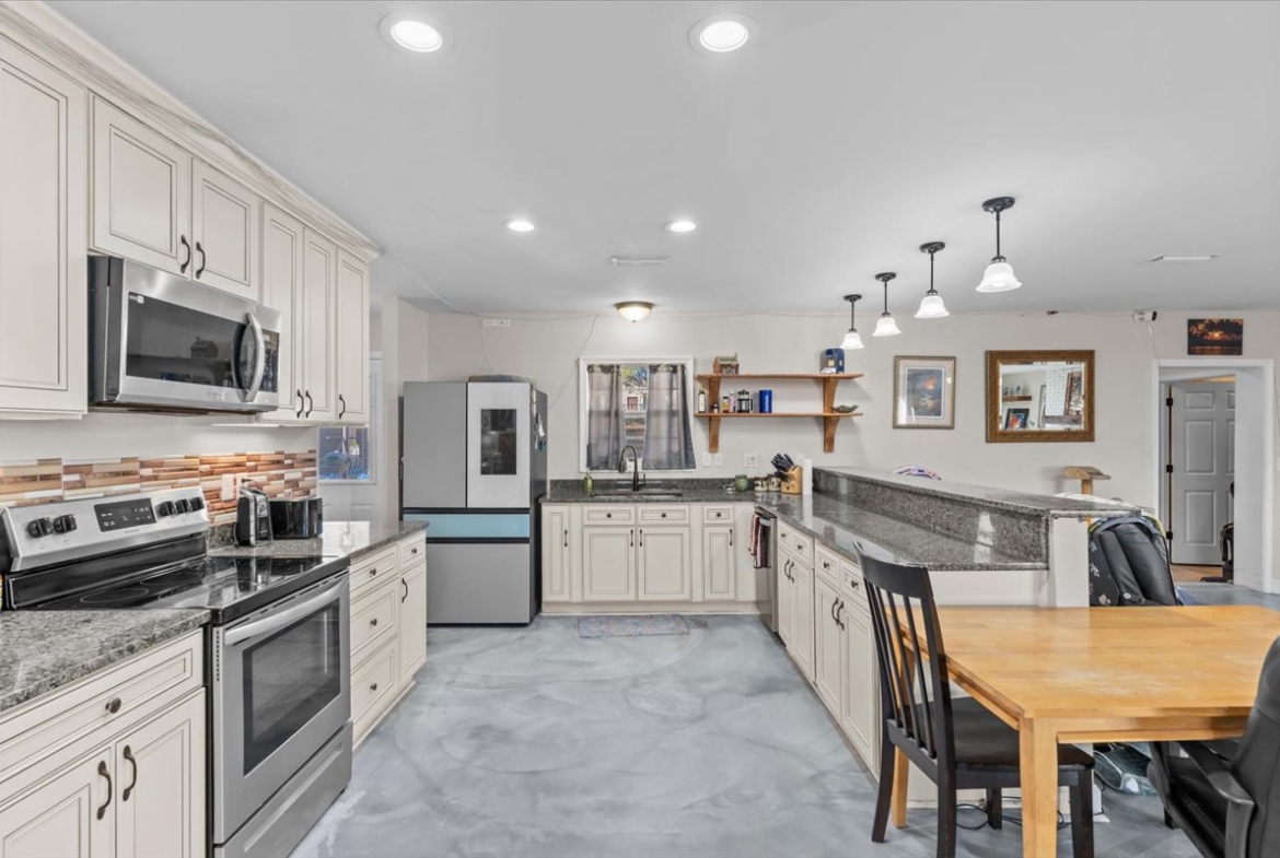 | Modern comfort meets 1.5 acres of paradise. Step into this stunningly remodeled (2018) ranch-style home where sleek stained concrete floors and an expansive open floor plan create an immediate sense of modern cool. The heart of the home features a cozy wood-burning fireplace, perfect for chilly evenings. The primary suite boasts a massive, custom-tiled walk-in shower with dual shower heads for a spa-like experience. Seamlessly transition to your outdoor sanctuary through elegant French doors that lead directly to the pool patio area. Spread out on 1.5 acres of land and spend your summers lounging by the inground saltwater pool, featuring a recently rebuilt pool pump for worry-free maintenance. Major peace-of-mind upgrades include: -Efficiency: Tankless water heater for endless hot water. -Full 2018 Remodel: Modern finishes and thoughtful design throughout. -Systems: Roof and HVAC both replaced in 2018. -Property Features: Recently redone driveway, a 10×10 storage shed for all your outdoor gear, and the backyard is fully fenced in with a chain-link fence. Whether you’re looking for room to roam, a space to entertain, or a turn-key home where every detail has been considered, this property delivers. Don’t miss your chance to own a rare combination of acreage and modern luxury!