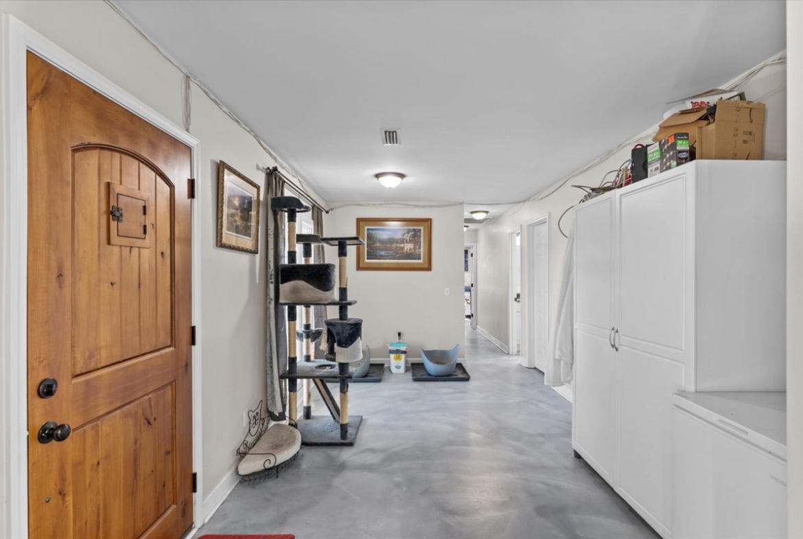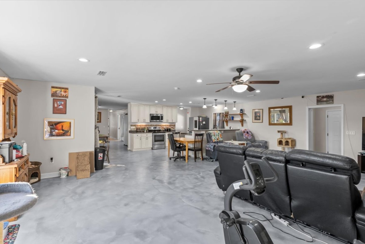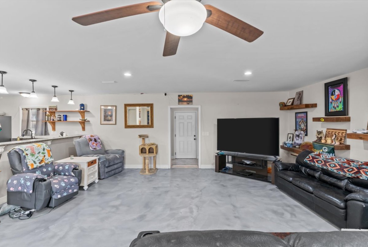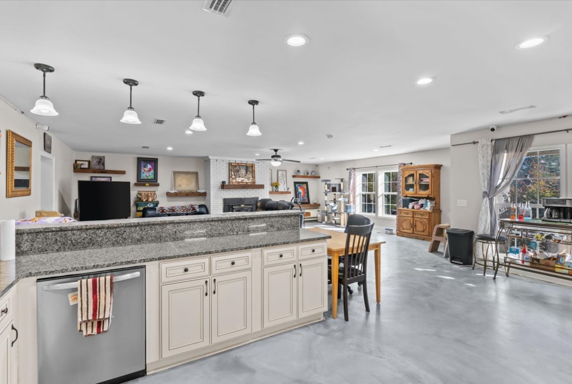| Modern comfort meets 1.5 acres of paradise. Step into this stunningly remodeled (2018) ranch-style home where sleek stained concrete floors and an expansive open floor plan create an immediate sense of modern cool. The heart of the home features a cozy wood-burning fireplace, perfect for chilly evenings. The primary suite boasts a massive, custom-tiled walk-in shower with dual shower heads for a spa-like experience. Seamlessly transition to your outdoor sanctuary through elegant French doors that lead directly to the pool patio area. Spread out on 1.5 acres of land and spend your summers lounging by the inground saltwater pool, featuring a recently rebuilt pool pump for worry-free maintenance. Major peace-of-mind upgrades include: -Efficiency: Tankless water heater for endless hot water. -Full 2018 Remodel: Modern finishes and thoughtful design throughout. -Systems: Roof and HVAC both replaced in 2018. -Property Features: Recently redone driveway, a 10×10 storage shed for all your outdoor gear, and the backyard is fully fenced in with a chain-link fence. Whether you’re looking for room to roam, a space to entertain, or a turn-key home where every detail has been considered, this property delivers. Don’t miss your chance to own a rare combination of acreage and modern luxury!