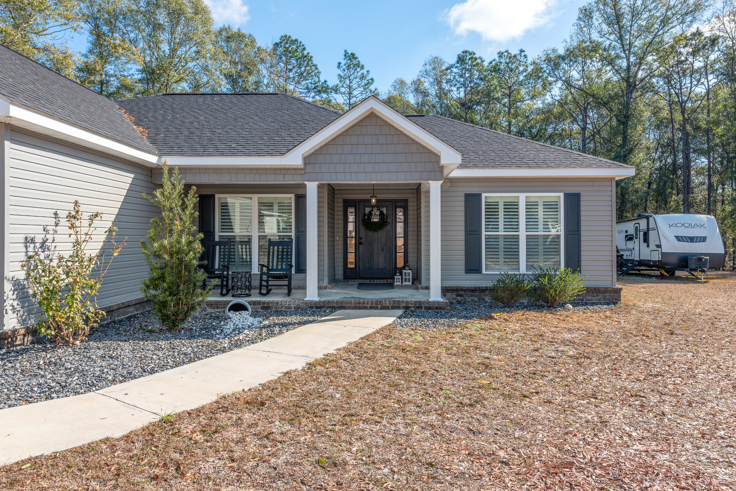 Check out this like NEW home built in 2023 with a like NEW 24×24 metal building featuring a 14×24 lean to and a 12×24 lean-to. The metal building includes electricity and a roll-up door – ideal for storage, hobbies, or a workshop. Inside the home you will find an open-concept kitchen, dining, and living area. The kitchen offers a large island, leathered granite countertops, Kitchen Aid appliances, and a touch-sensor faucet. The interior features a split bedroom floor plan for added privacy. The spacious primary suite includes an ensuite with double vanities, a jetted soaking tub, separate shower, toilet closet, and walk-in closet. Additional features include a 2-car garage, covered front and back porches, tankless water heater, and plantation shutters throughout the home. Conveniently located in town Geneva close to schools, grocery, shopping, restaurants and medical. Located approximately 10 / 15 miles from Samson & Hartford, AL – 25 / 30 miles from Enterprise & Ft Rucker, AL – 35 / 40 miles from Dothan, AL – 75 / 85 miles to the beautiful beaches of Florida.